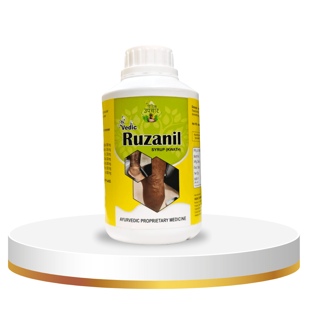 Ruzanil Syrup is an Ayurvedic liquid formulation from Vedic Upchar designed to relieve joint and muscle discomfort and support mobility. It combines traditional herbs known for their anti-inflammatory, analgesic, and rejuvenating actions. Ruzanil works gently to reduce stiffness, soothe sore muscles, and improve comfort during daily movement.